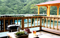 숲속나들이 펜션의 부대시설에는 수영장, 바베큐장, 명지계곡, 정자 등이 있습니다.