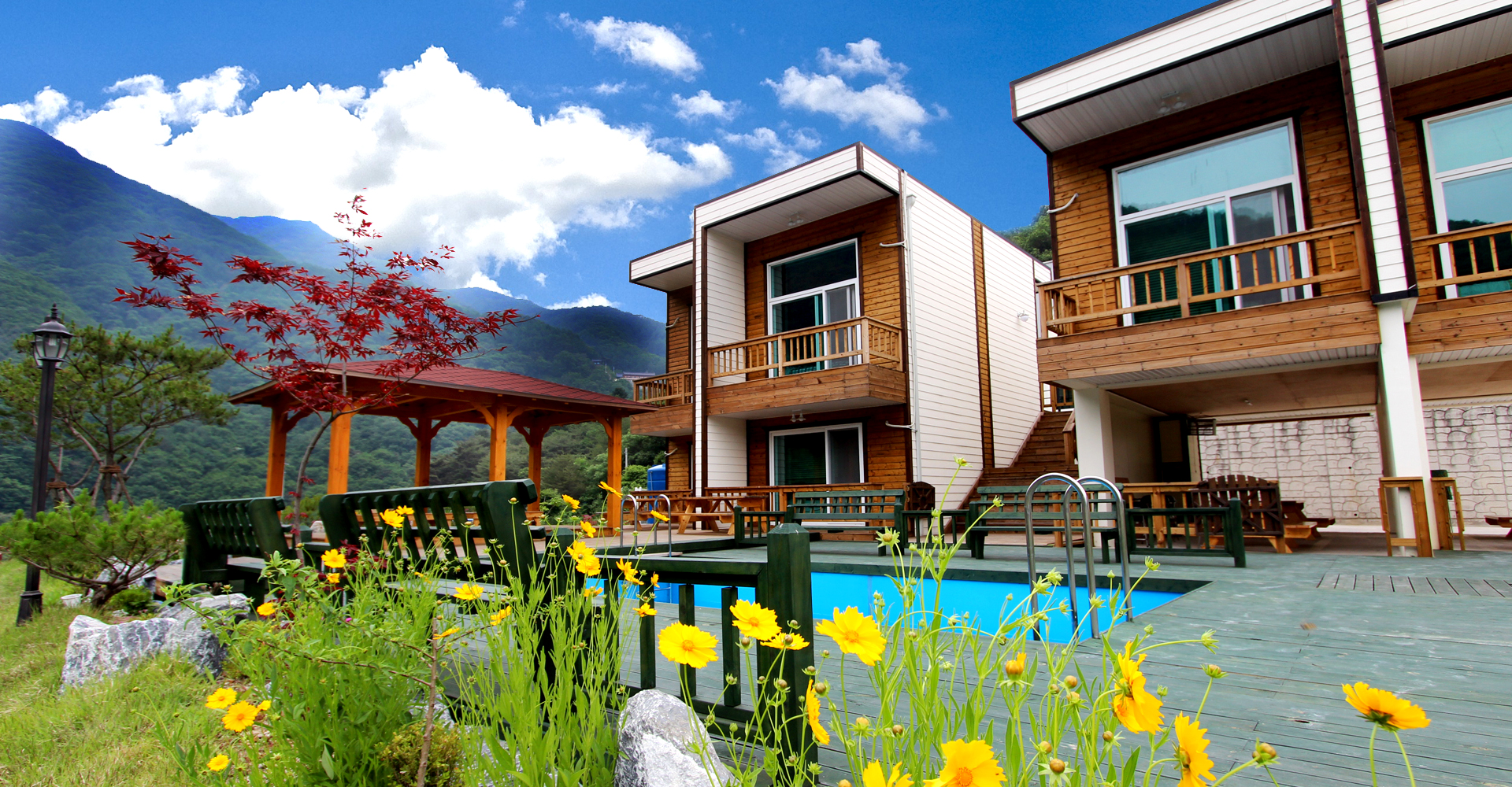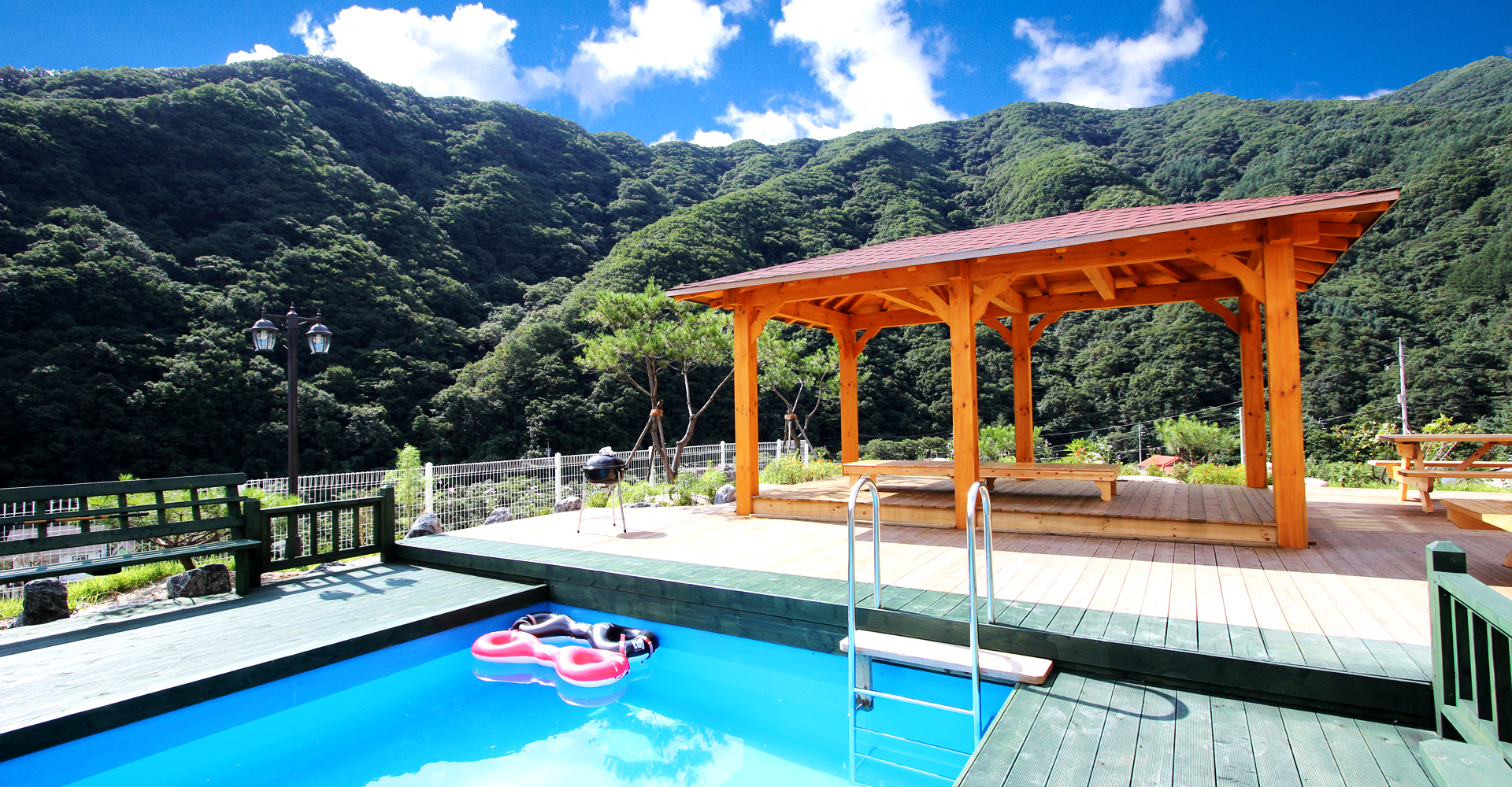 자연과 함께 하는 곳에 위치한 수영장에서 가족, 연인, 친구들과 멋지고 즐거운 여름을 보내세요.