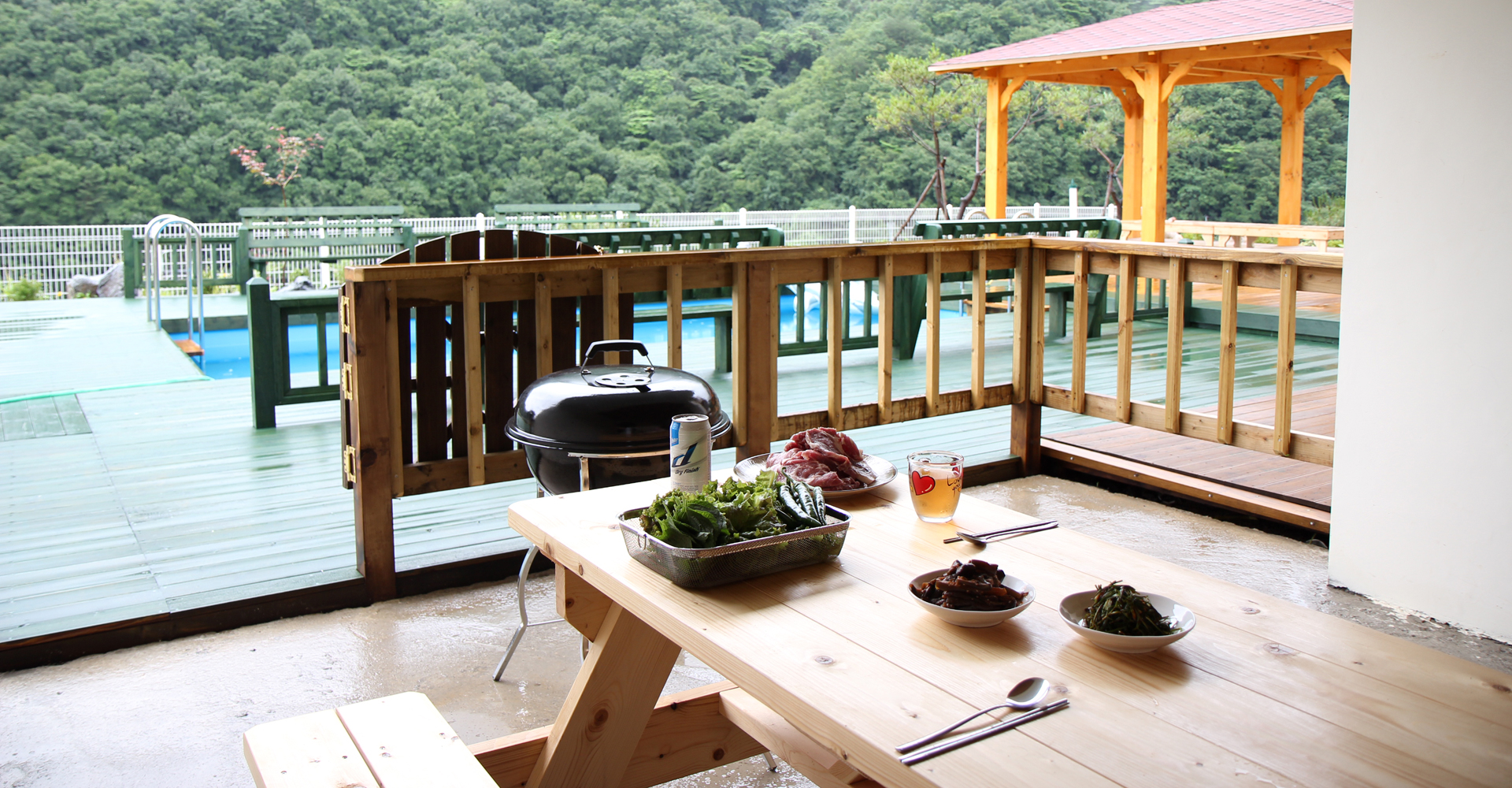 - 객실 내에서는 고기를 구워 드실 수 없습니다. 바베큐 시설을 이용하여 주시기 바랍니다.