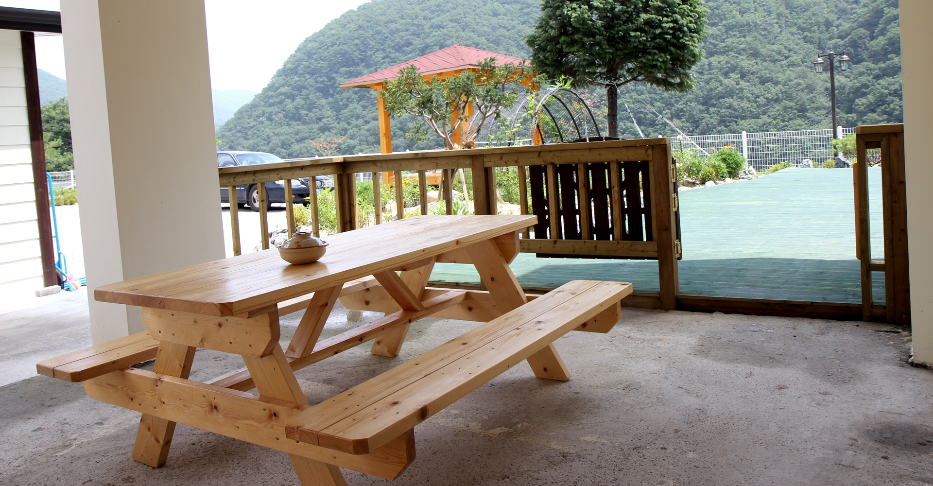 아늑하게 만들어진 정자에 앉아 숲속에서 불어오는 시원하고 상쾌한 공기를 마시며 자연속의 여유를 즐겨보세요.